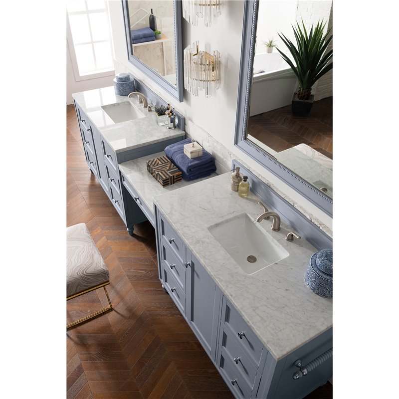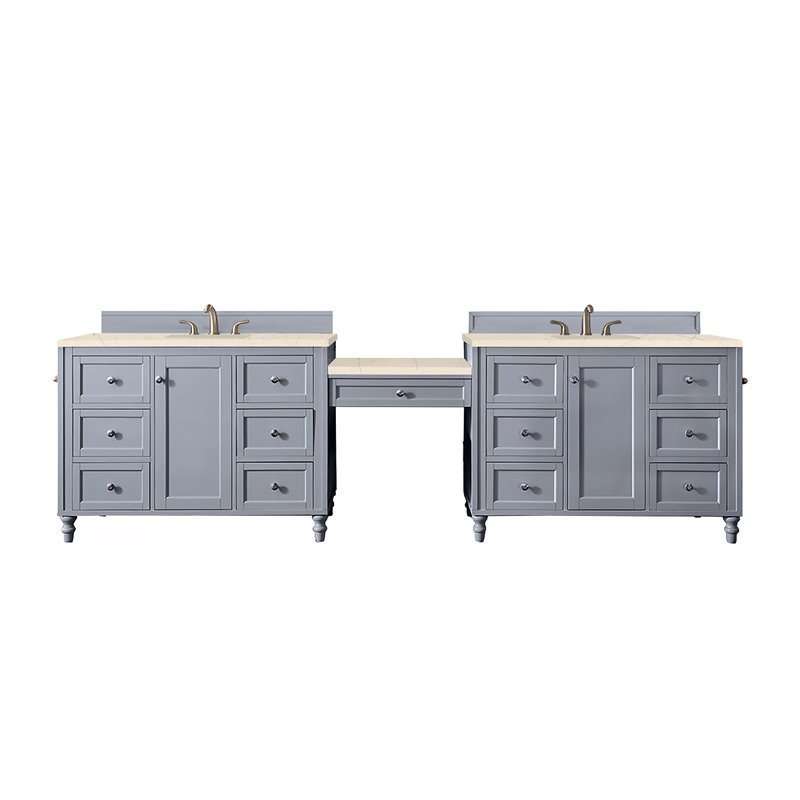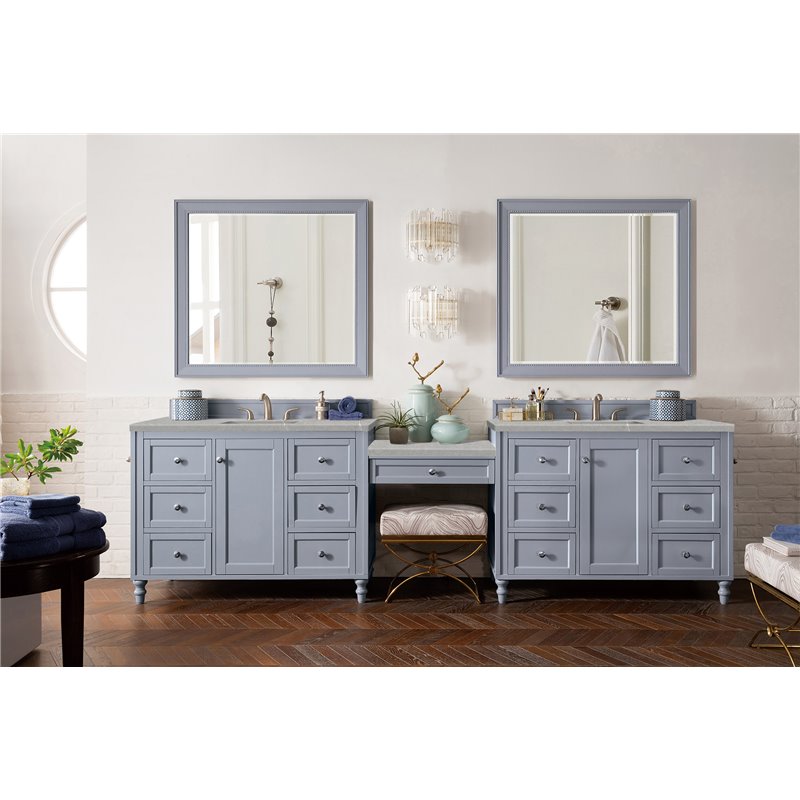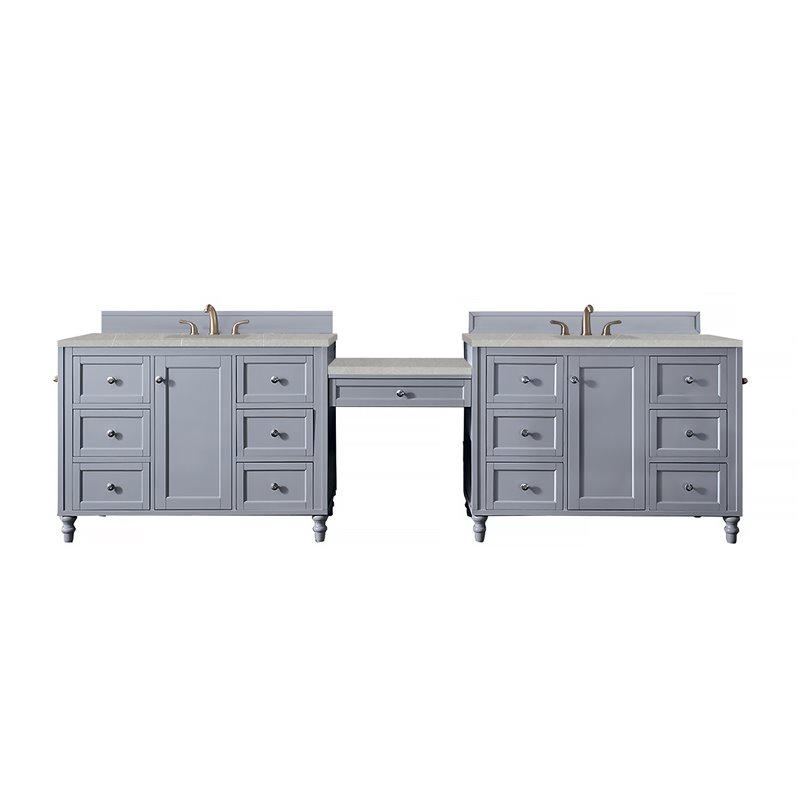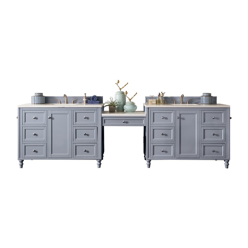 Copper Cove Encore 122" Double Vanity Set, Silver Gray w/ 3 CM Arctic Fall Solid Surface Top