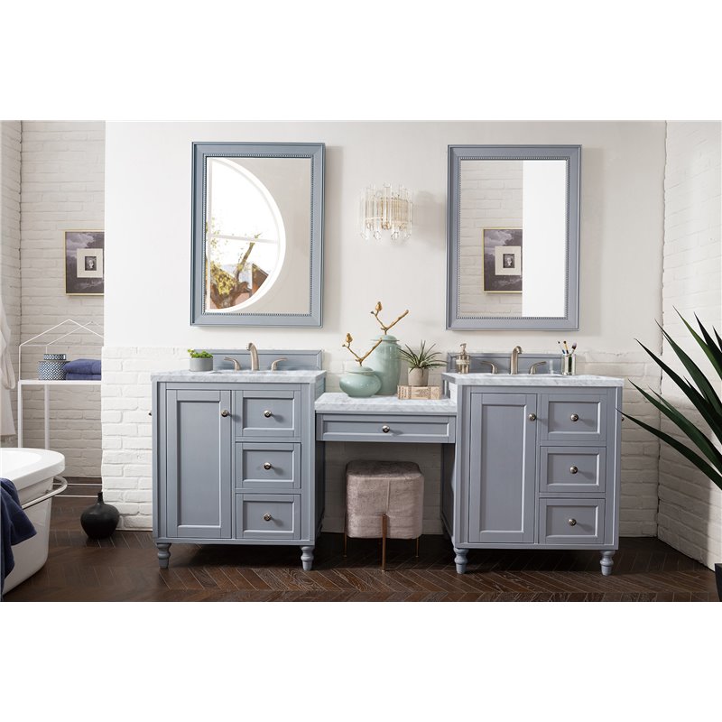 | Feature 1 | Two 30" Silver Gray single vanities, each with one door, six drawers and interior shelf space |