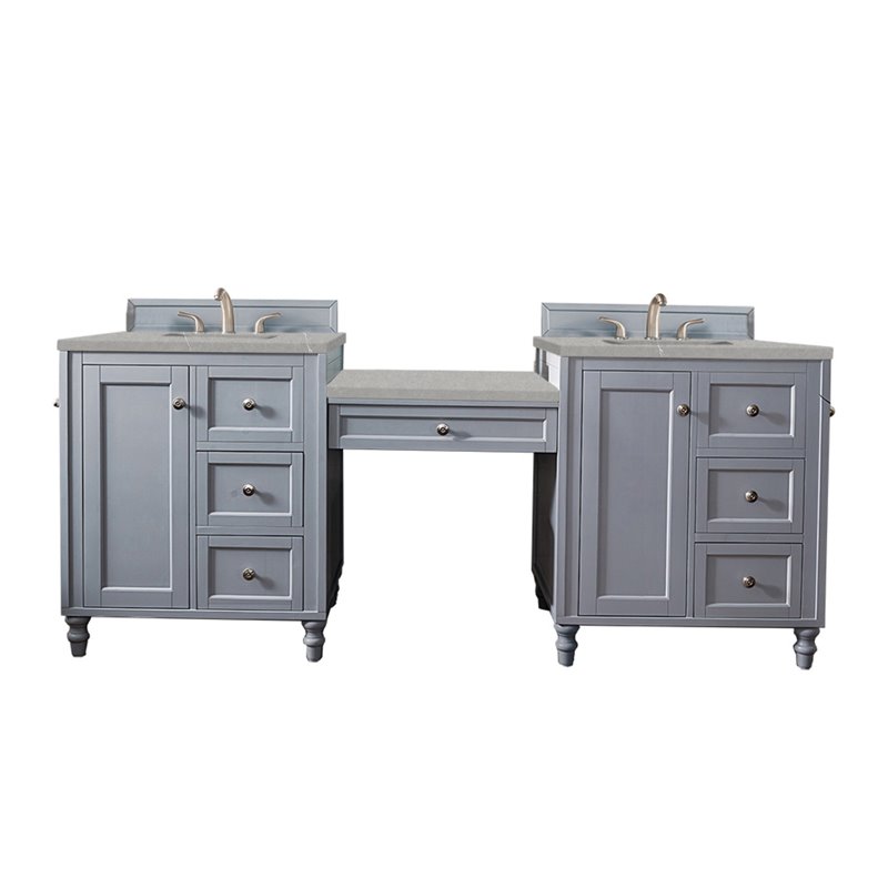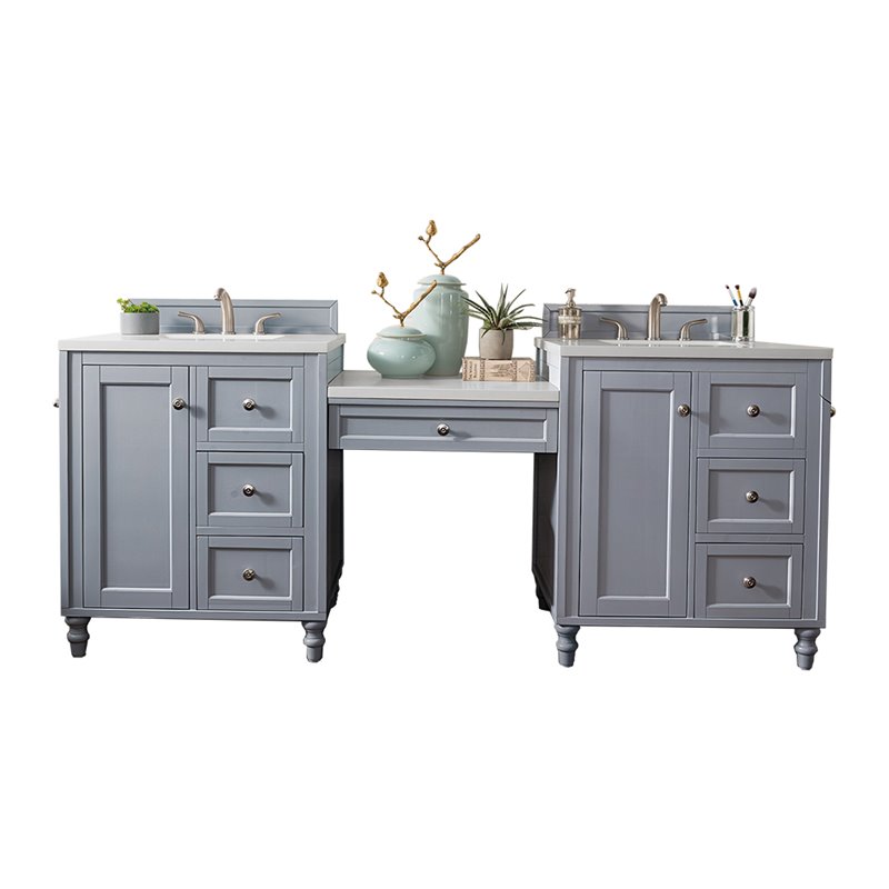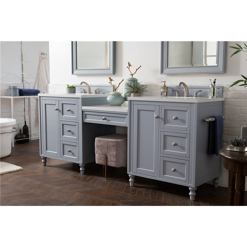 Copper Cove Encore 86" Double Vanity Set, Silver Gray w/ 3 CM Arctic Fall Solid Surface Top