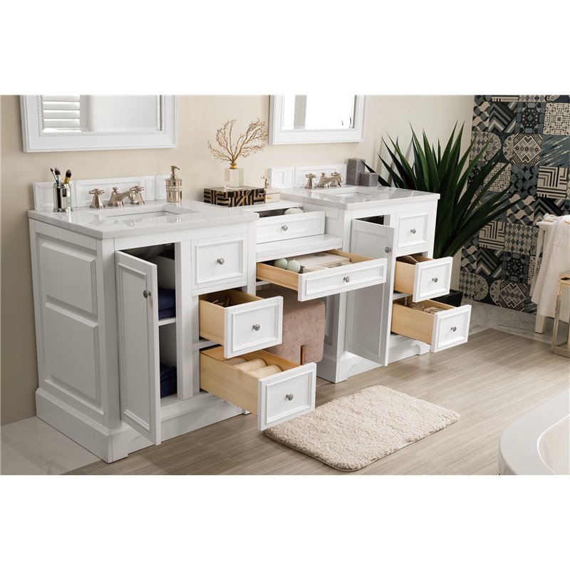 De Soto 82" Double Vanity Set, Bright White w/ 3 CM Arctic Fall Solid Surface Top