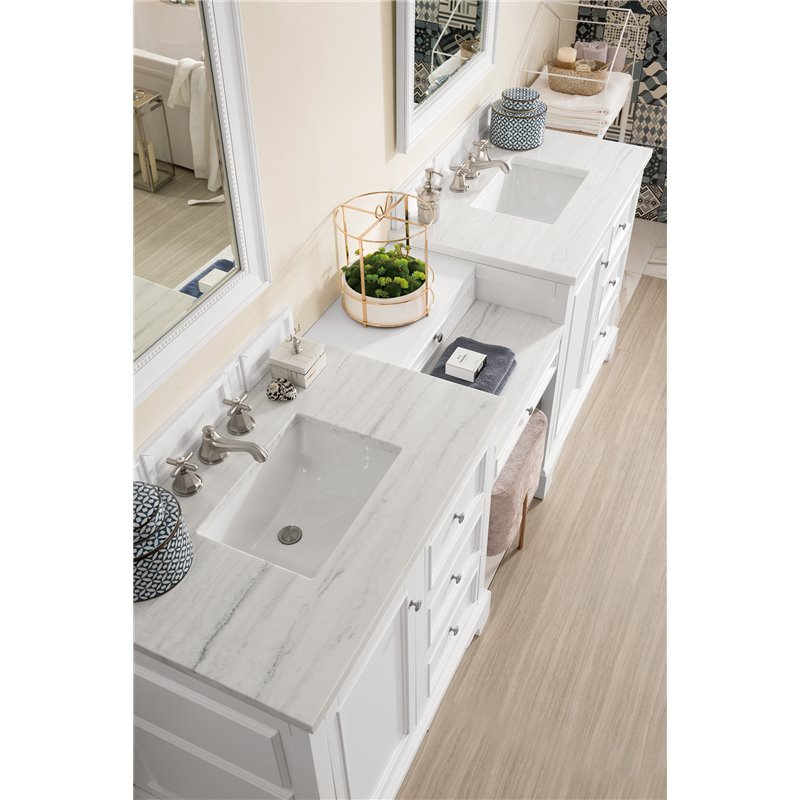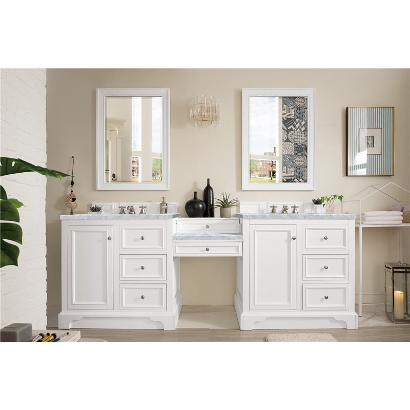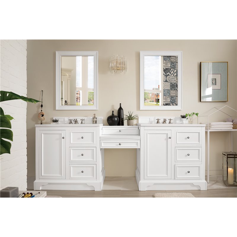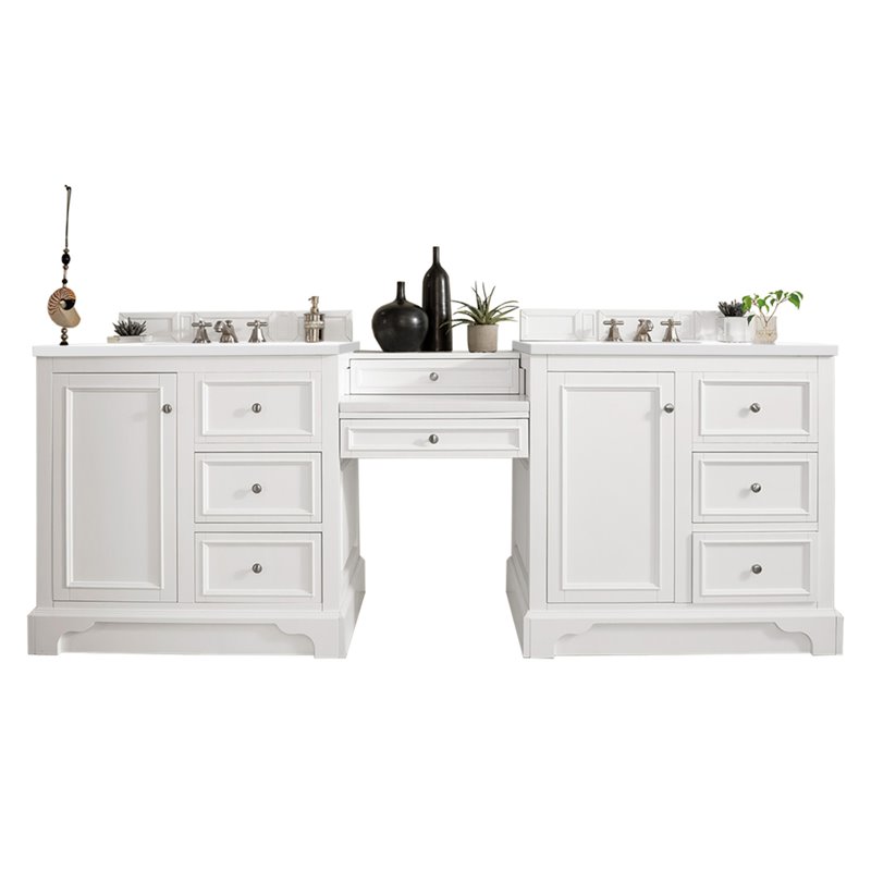 De Soto 94" Double Vanity Set, Bright White w/ 3 CM Arctic Fall Solid Surface Top