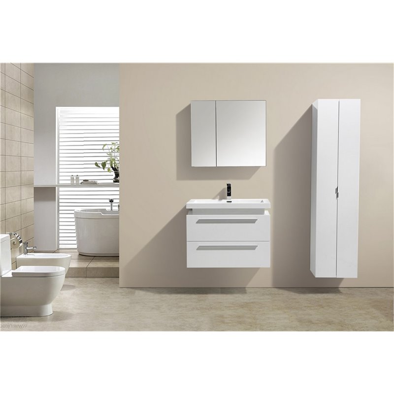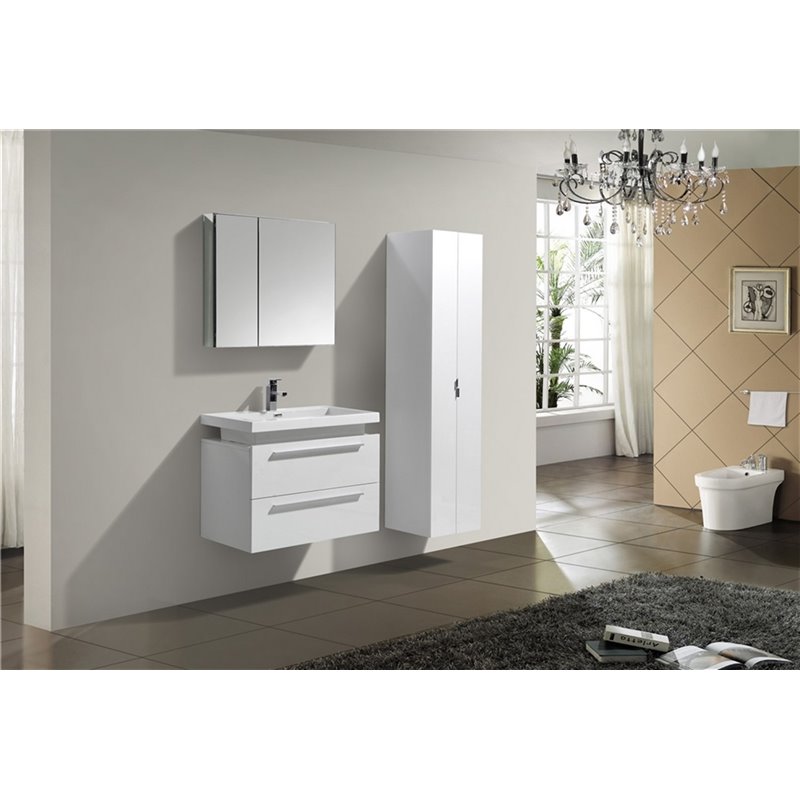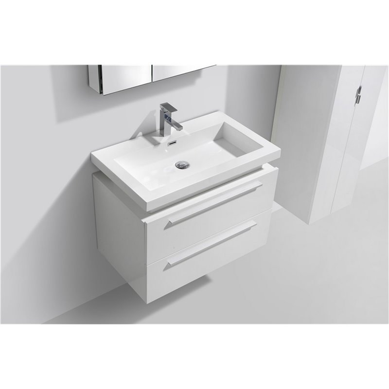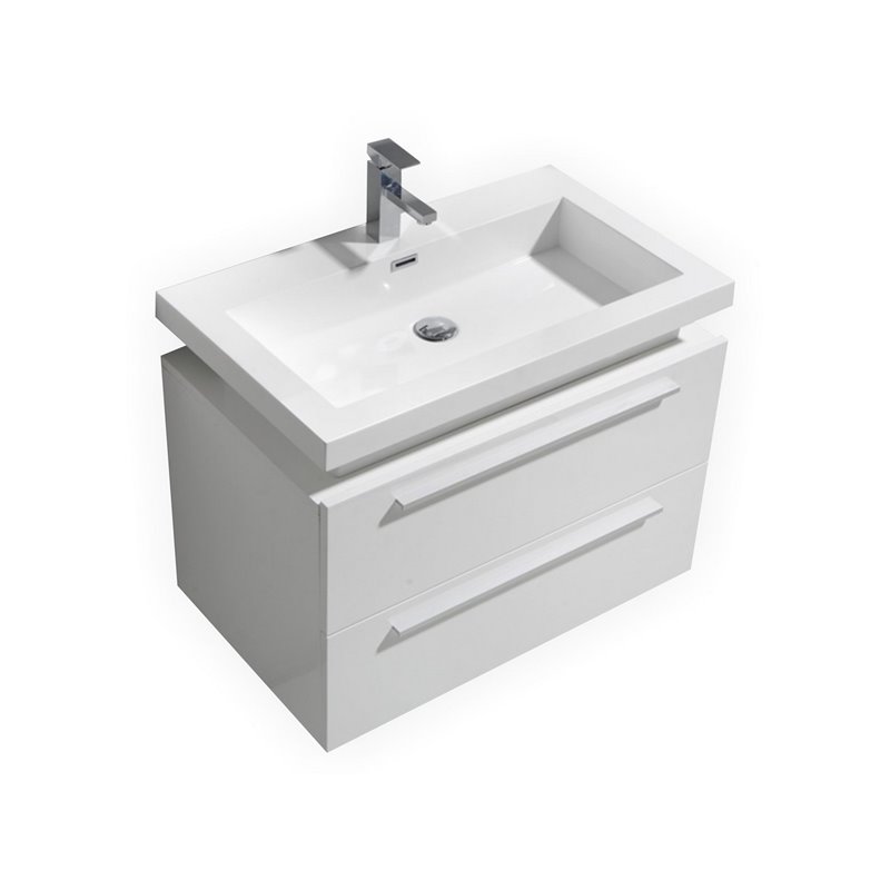 Kube 32" High Gloss White Wall Mount Modern Bathroom Vanity w/ Vessel Sink