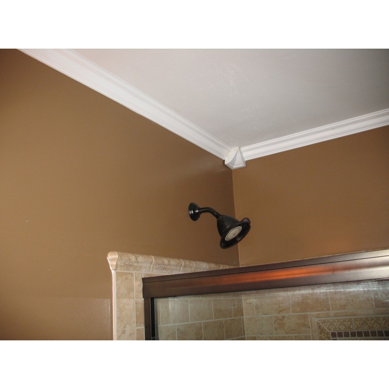 Burroughs Hardwoods crown molding is manufactured with a dense architectural polyurethane compound (not Styrofoam) that allows it to be semi-flexible and 100% waterproof. This molding is delivered pre-primed for paint. It is installed with architectural adhesive and/or finish nails. It can also be finished with caulk, spackle and your choice of paint, just like wood or MDF. A major advantage of polyurethane is that it will not expand, constrict or warp over time with changes in temperature or humidity. It's safe to install in rooms with the presence of moisture like bathrooms and kitchens. This product will not encourage the growth of mold or mildew, and it will never rot.