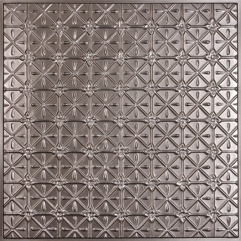 "Continental Tin Ceiling Tiles have a starburst design and can be cut and used as ceiling borders. The faux tin finish provides the look of real metal ceilings. Please Note: When using this style in suspended ceiling installations some minor sagging may occur when used in full-size grid squares. Please contact us if you have any questions or concerns about this style. 2' x 2' Tin. Can be mounted directly to your ceiling using adhesive installed in both standard 1"" and slimline 9/16"" drop ceiling grid or placed beneath existing tiles to reface your outdated ceiling. Suitable for use as edge trim. Made from laminated 0.030"" thick rigid vinyl plastic. Lightweight and flexible for easy installation."