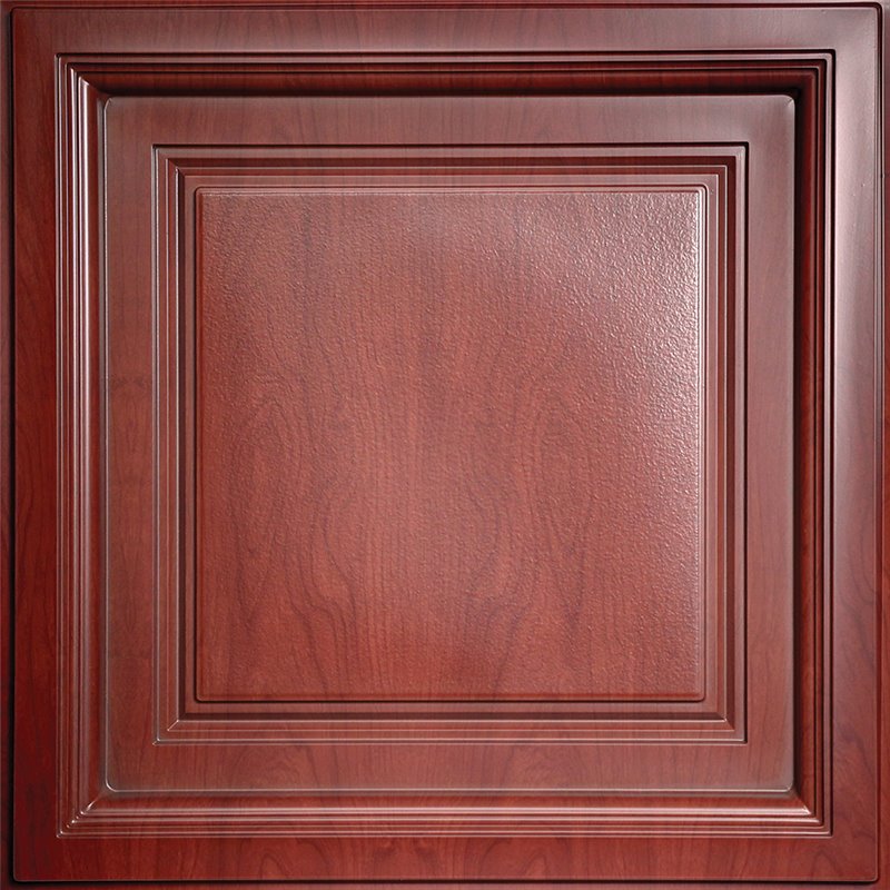 "Westminster Cherry Wood Ceiling Tiles pack all we know about design into one new style. This faux wood finish conjures images of deep mahogany. 2' x 2' Cherry Wood. Can be installed in standard 1"" drop ceiling grid. Made from laminated 0.013"" thick rigid vinyl plastic. Lightweight and flexible for easy installation."