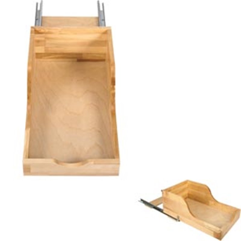 Preassembled High Back Rollout Shelf System for 15" Cabinet Openings. Featuring 21" Undermount Soft Closing Drawer Slides. Preassembled and ready to install mounts to bottom of cabinet. Soft closing undermount slides. 5/8" White Birch rollout drawer box with UV coating with1/4" bottoms. Overall Dimensions: 13 1/16" wide x 21 7/16" deep x 9" tall.