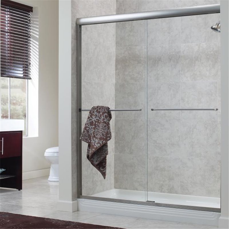 70"H Cove 1/4" Frameless Sliding Shower Door- Steam Mist Glass Fits Opening 54" to 58". Affordable Luxury The Cove Shower Door Collection will inspire you to update your look and create a stylish, contemporary bathroom, while respecting your budget. Whether you are designing a new bathroom, or renovating your current one, you will find a Cove Collection frameless shower door to complement your space. Style and Versatility Create the bathroom you have always wanted-stylish and serene. With Cove shower doors, you can select from four gorgeous finishes and nine glass styles, as well as a selection of handles and towel bars in order to create the perfect shower door for you!