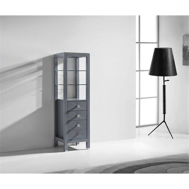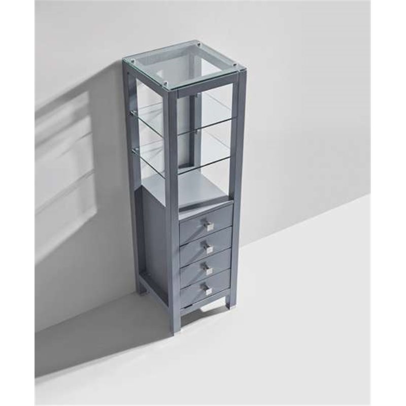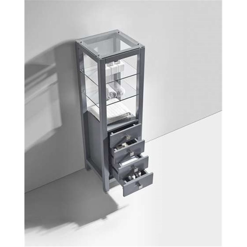 The Virtu USA grey - Cailey 16" Bathroom Vanity Side Cabinet is simple, yet modern and elegant. Handcrafted from Eco-friendly solid rubberwood and finished in grey, the MDC-489 features five sliding drawers, heat-tempered safety glass shelving, and the latest design in contemporary modern furniture. If you're in the middle of a contemporary bathroom remodel and need that extra something to tie the room together, this cabinet is the perfect choice.Virtu USA has taken the initiative by changing the vanity industry and adding soft closing doors and drawers to their entire product line. The premium soft-closing hardware not only increases the safety of the vanity, but also its lifetime reliability.Specifications: • Maximum Dimension: 16.3 in. W x 16 in. D x 58.3 in. H • Side Cabinet (1): 16.3 in. W x 16 in. D x 58.3 in. H Features: • Grey Cabinet Finish • Solid Oak Wood • Water Resistant Low V.O.C Sealer • Adjustable hinges and slides • 4 Drawers with Soft Closing Hinges • Designer Brushed Nickel Hardware • Faucet sold separately • Minimal assembly required