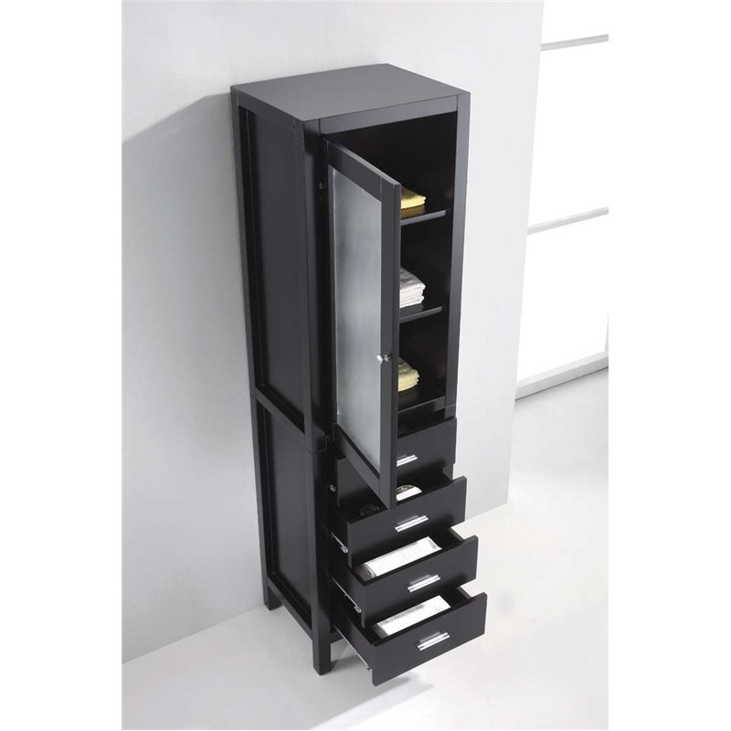 The Virtu USA Espresso - Wellmont 20" Side Cabinet offers exceptional storage space. Handcrafted from Eco-friendly solid rubberwood and finished in Espresso, the MDC-5120 features a top storage door with shelving and 4 storage drawers. This cabinet is a great side unit to any Virtu vanity.Virtu USA has taken the initiative by changing the vanity industry and adding soft closing doors and drawers to their entire product line. The premium soft-closing hardware not only increases the safety of the vanity, but also its lifetime reliability.Specifications: • Maximum Dimension: 19.7 in. W x 15.75 in. D x 71.5 in. H • Side Cabinet (1): 19.7 in. W x 15.75 in. D x 71.5 in. H Features: • Espresso Cabinet Finish • Solid Oak Wood • Water Resistant Low V.O.C Sealer • Adjustable hinges and slides • 1 Door with Concealed Hinges • 4 Drawers with Soft Closing Hinges • Designer Brushed Nickel Hardware • Faucet sold separately • Minimal assembly required